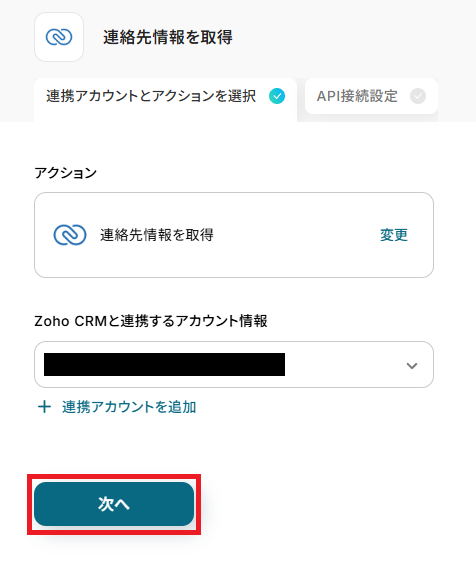 ステップ4:Zoho CRMの連絡先情報を取得する設定