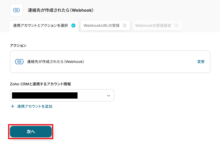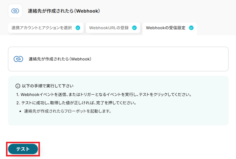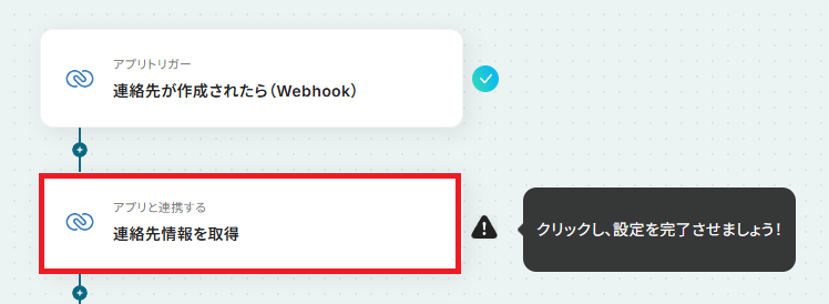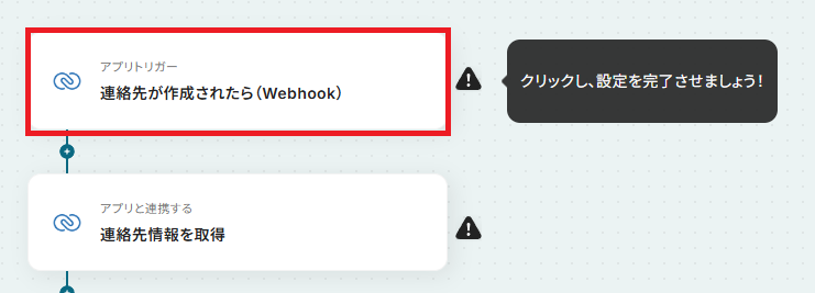 まず、「連絡先が作成されたら(Webhook)」をクリックしてください。