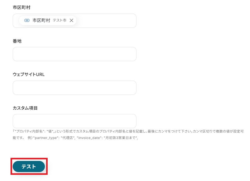 作成したらYoomに戻り、「テスト」を行ってください。