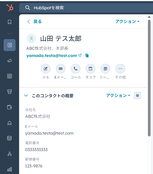 また、実際に新規コンタクトが作成されるので、HubSpotを確認してみましょう。