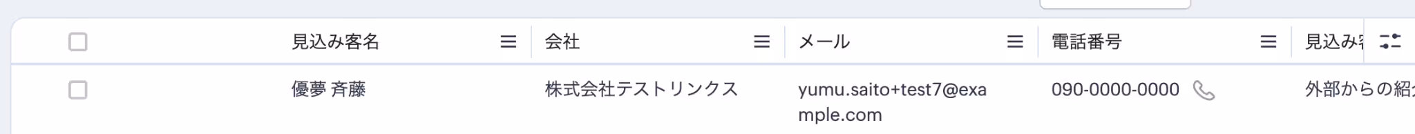 テストに成功すると、Zoho CRMに作成された見込み客の情報が一覧で表示されます。