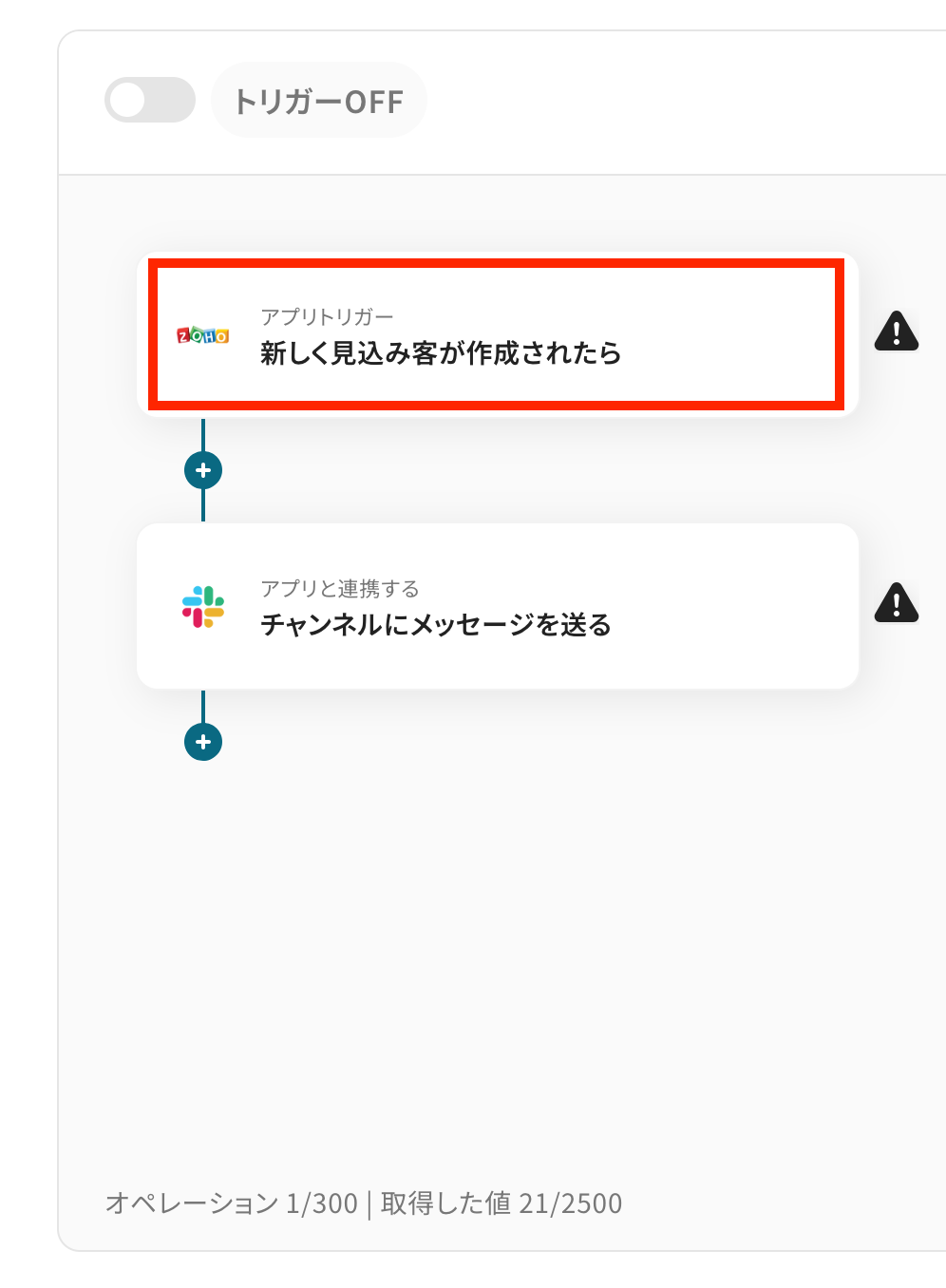 - Zoho CRMのトリガー設定およびSlackのアクション設定