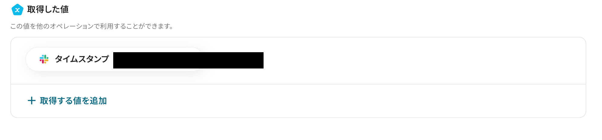 取得した値について詳しくはこちらをご参照ください。なお、この取得した値はこの後の設定で活用でき、Slackで送信可能なデータです。