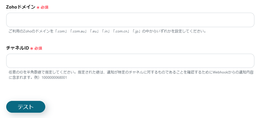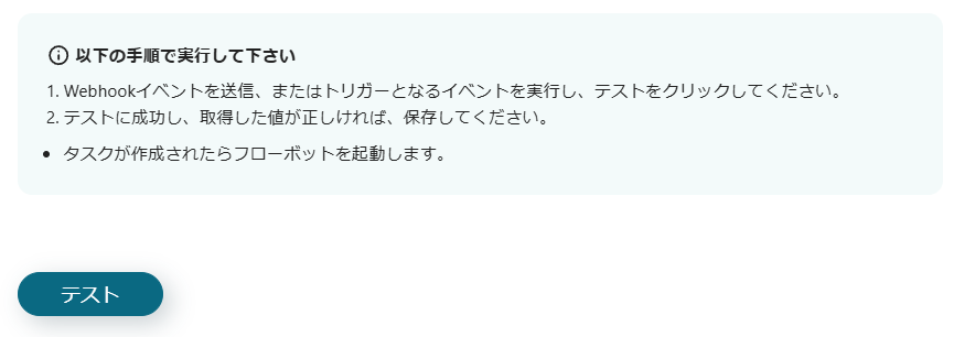 必要な項目を埋めたら、画面下部にあるテストボタンを押しましょう。