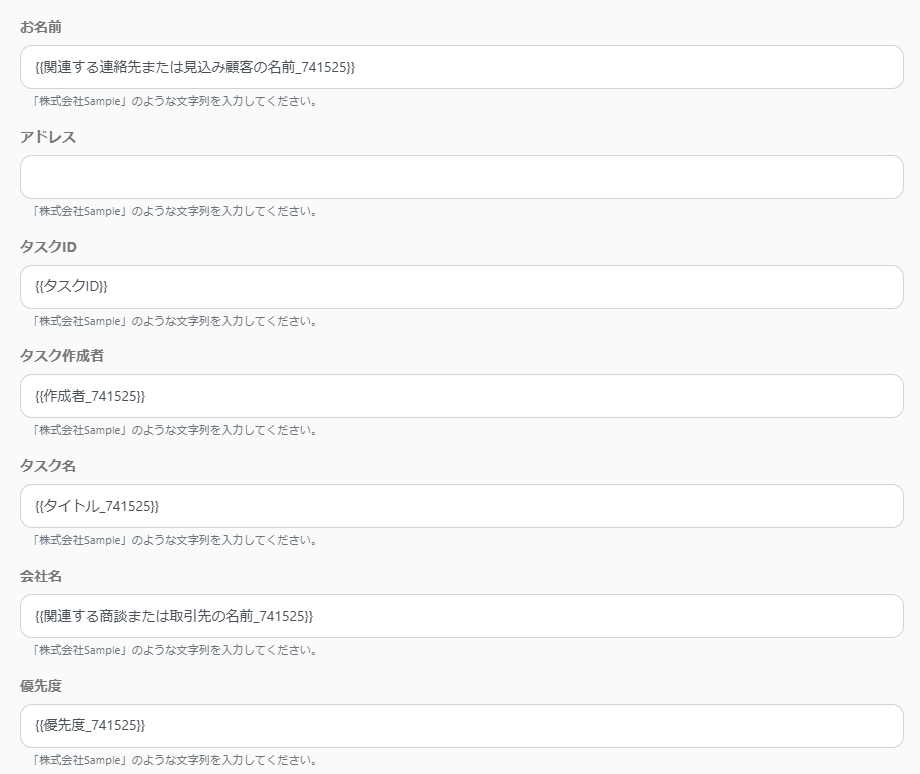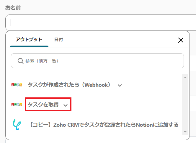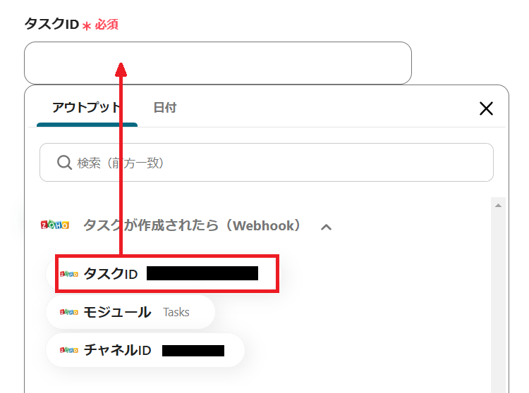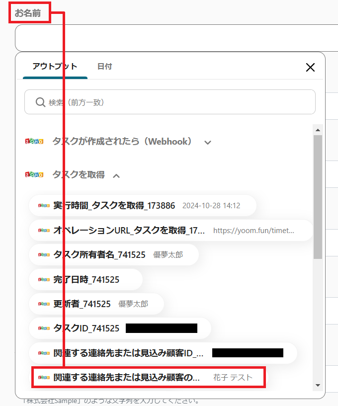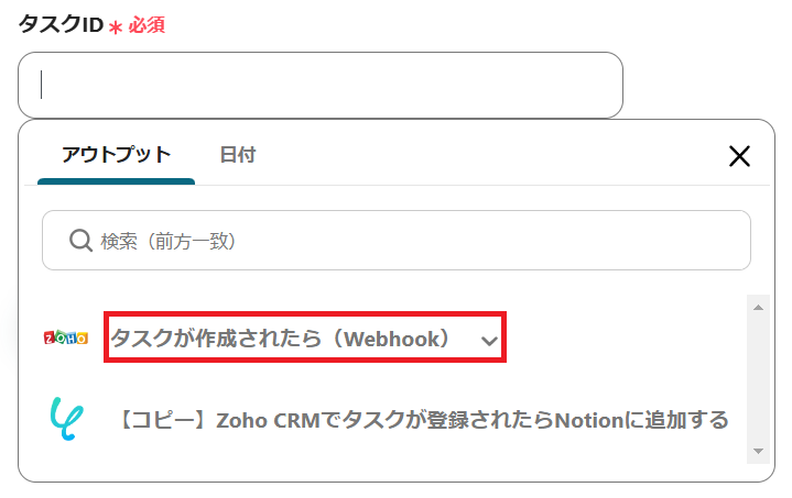 画像のように、Zoho CRMのデータが表示されるため、その中から「タスクID」をクリックしましょう。