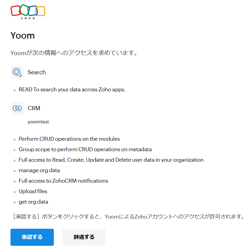 画面が切り替わり、「Yoomが情報へのアクセスを求めています」と表示がされます。