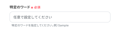 5.「特定のワード」は任意の内容を入力しましょう。 (入力した値を基にデータを取得します。)