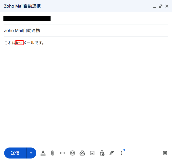 次の設定に移る前に、Zoho Mailで取得しているアドレスに特定のワードを含むメールを送ります。