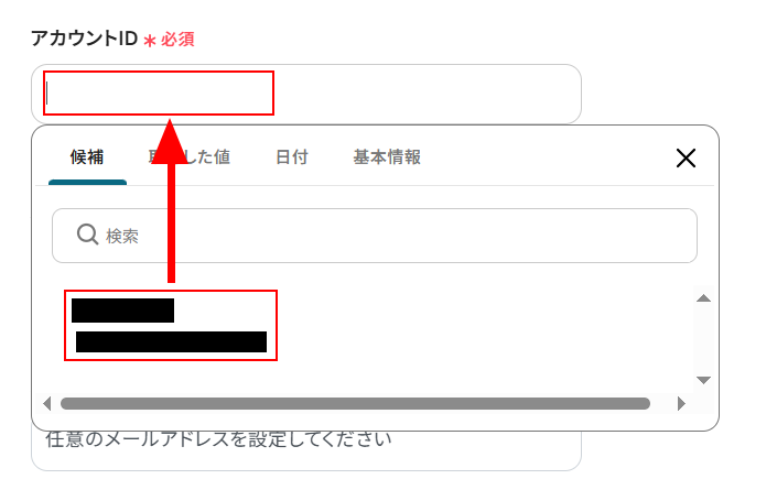 アカウントIDは、入力欄をクリックし、候補から選択します。