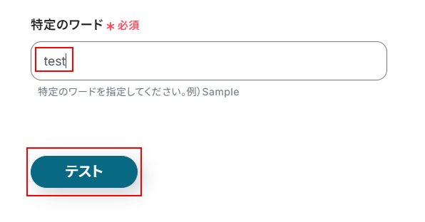 Yoom画面に戻り、転送を行いたいワードを設定します。今回は「test」と設定しました。
