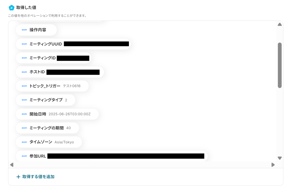 ・Zoomでミーティングのレコーディング情報を取得する際の注意点については下記をご参照ください。
