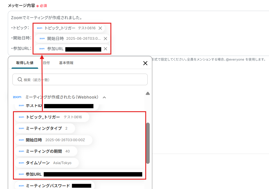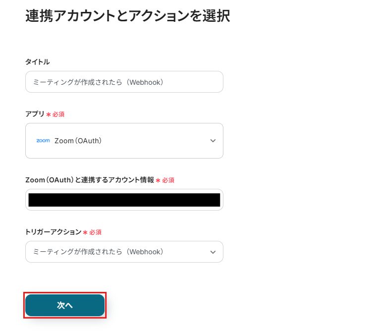 - Zoomのトリガー設定およびDiscordのアクション設定
