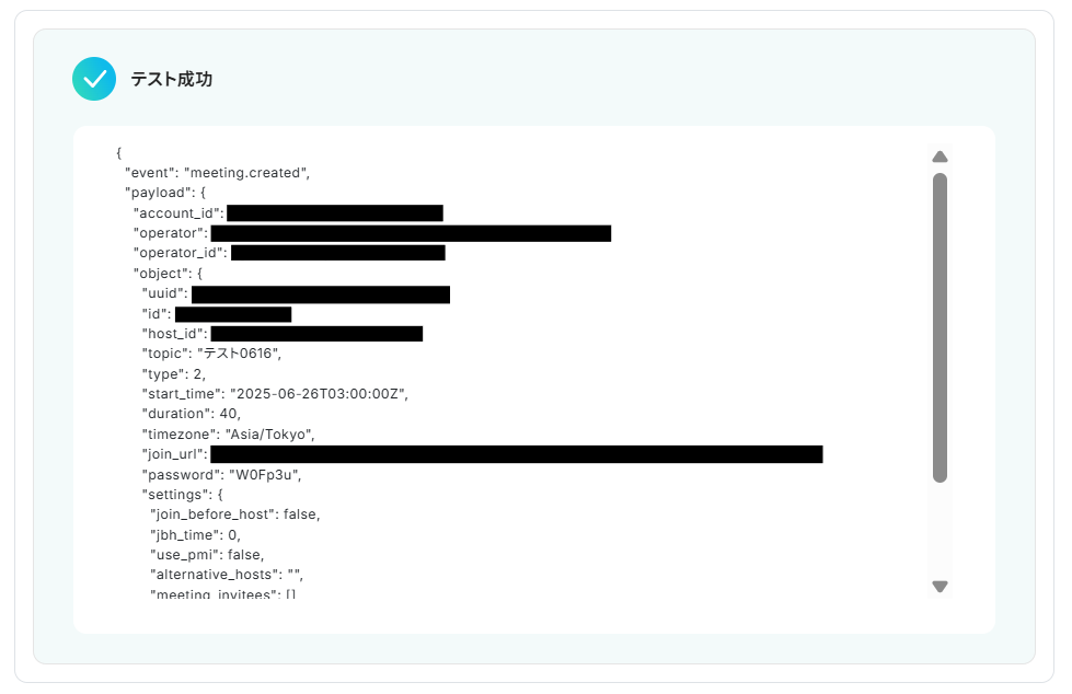 これにより、手動でのZoomリンクの生成や入力の手間を省き、スムーズな会議準備が可能になります。