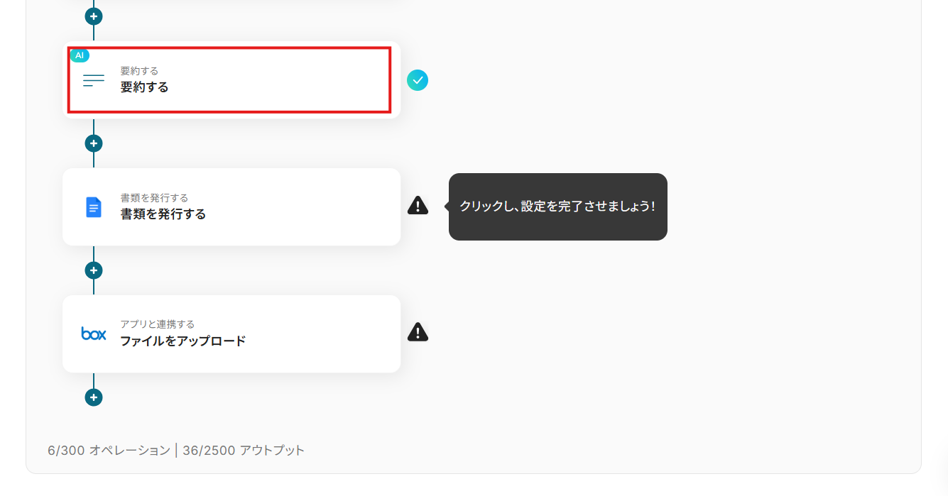 フローの画面に戻り、「要約する」にチェックマークがついていれば完了です。
