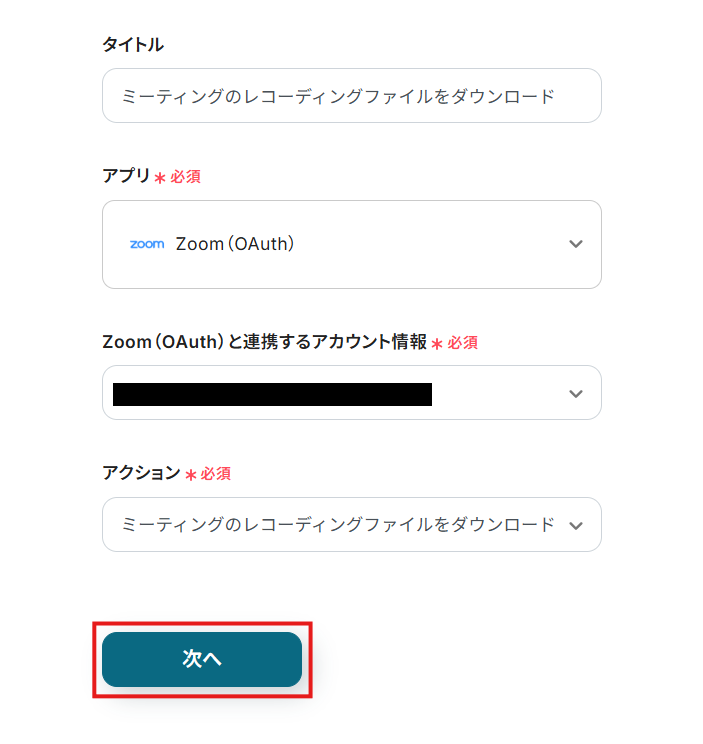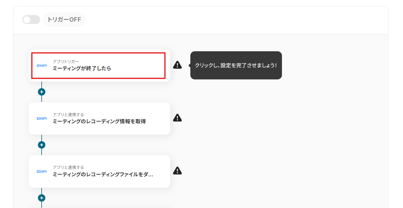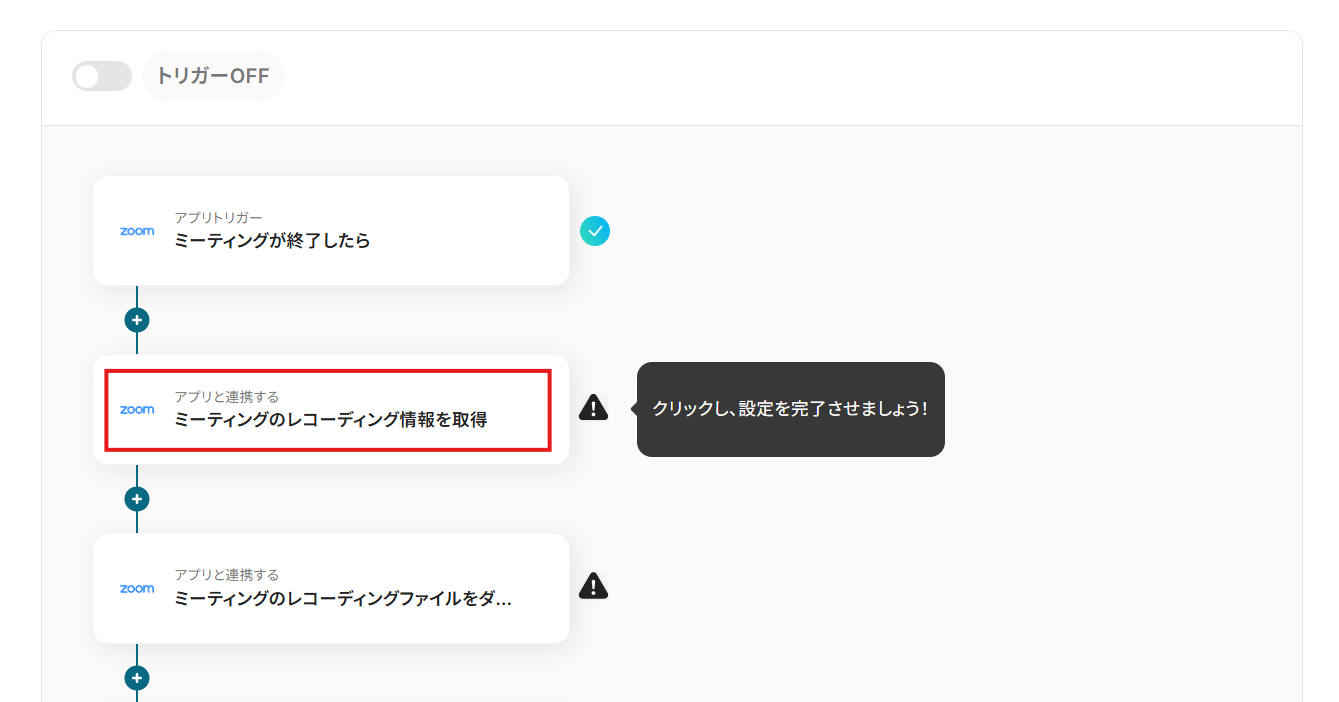 フローの画面に戻り、「ミーティングのレコーディングファイルをダウンロード」にチェックマークがついていれば完了です。
