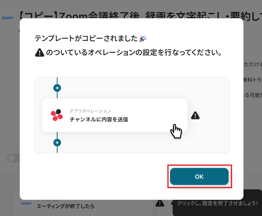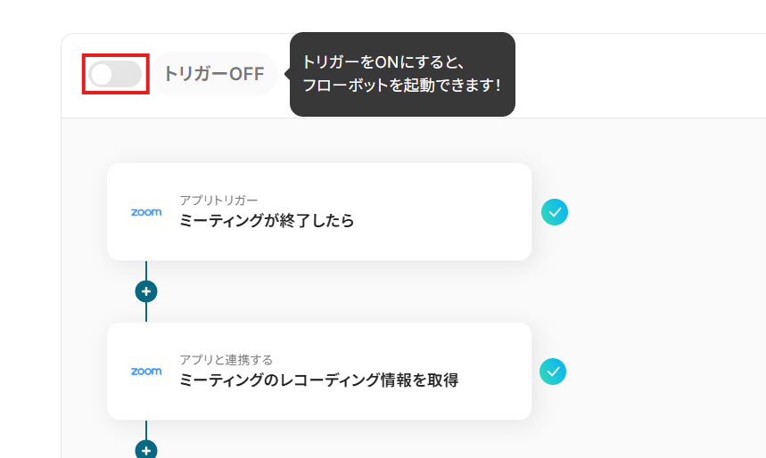フローの画面に戻り、「ミーティングが終了したら」にチェックマークがついていれば完了です。