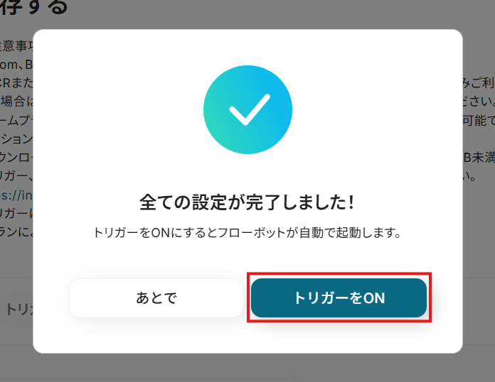 すぐにフローを稼働させるのであれば、「トリガーをON」をクリックします。