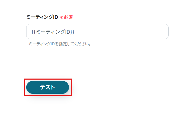 設定用のミーティングを終了させたら「テスト」をクリックして、ミーティング情報の取得テストを実行しましょう。