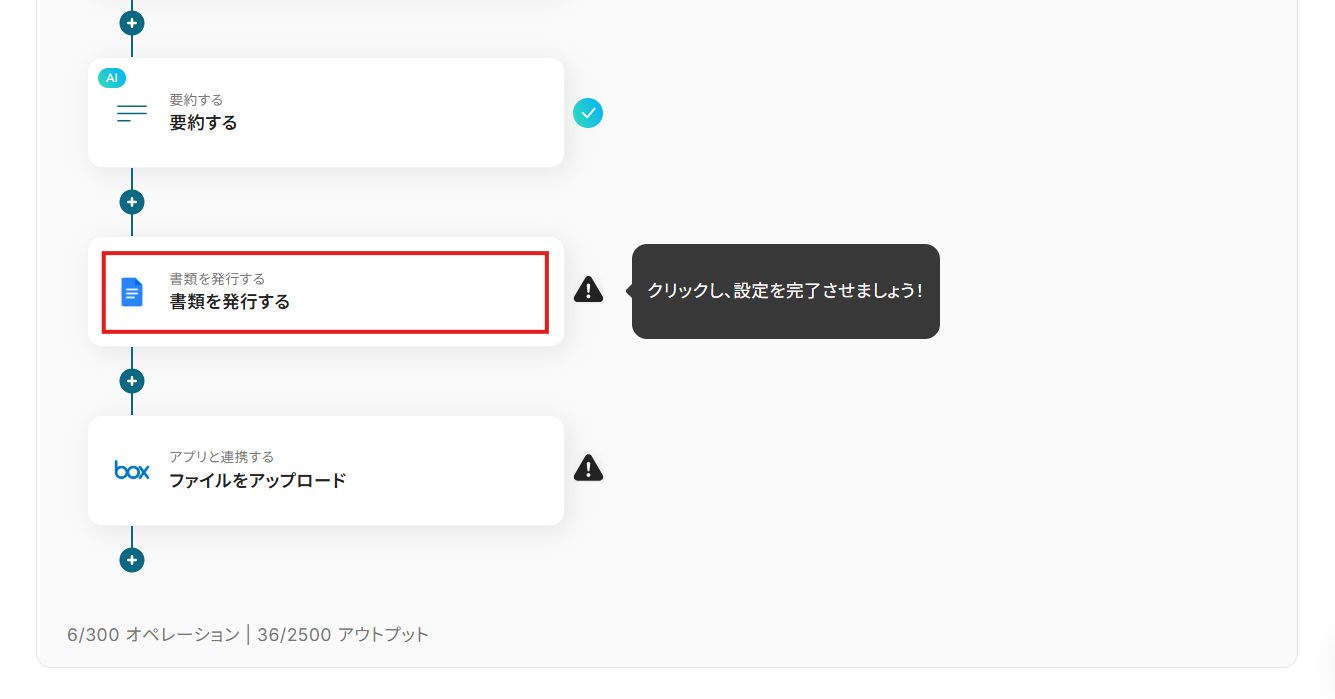フローの画面に戻り、「書類を発行する」にチェックマークがついていれば完了です。