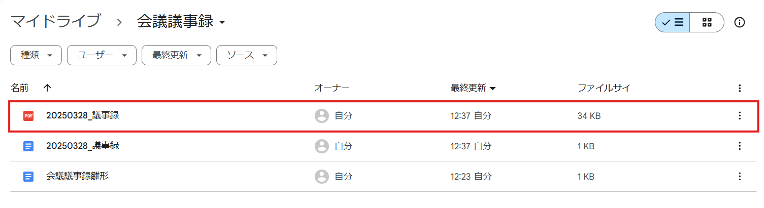 デフォルトは「ファイル作成時の日付_議事録」となっています。必要であれば変更してください。