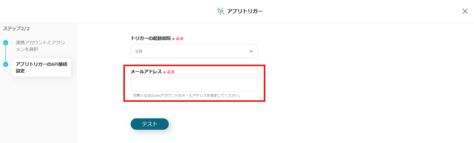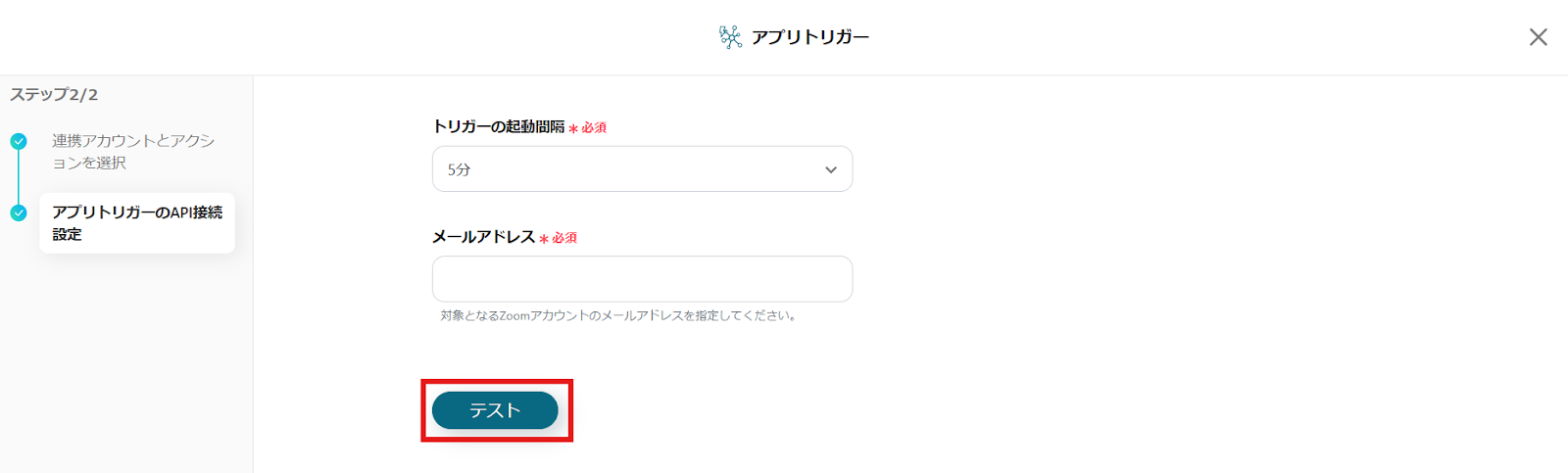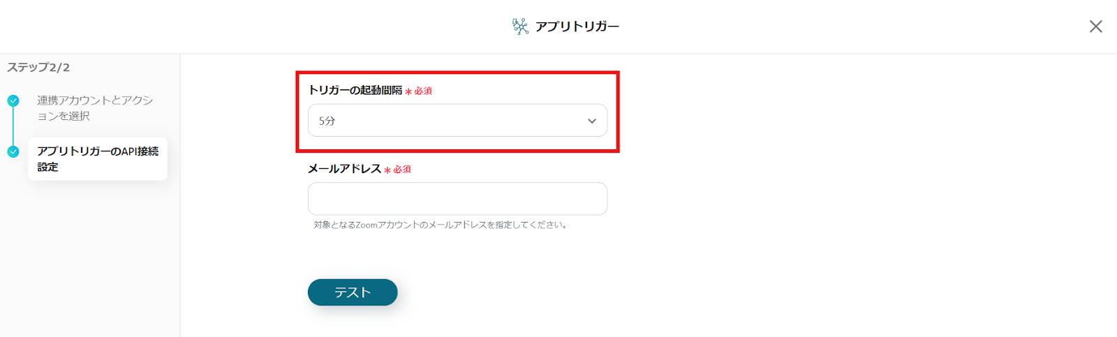 トリガーは5分、10分、15分、30分、60分の間隔で起動間隔を選択できます。