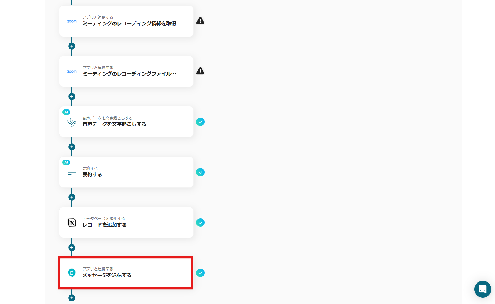 しかし、今回の連携を行えば、文字起こし・要約・通知という流れが素早く完結するため、かなりのリソースの節約となるはずです。
