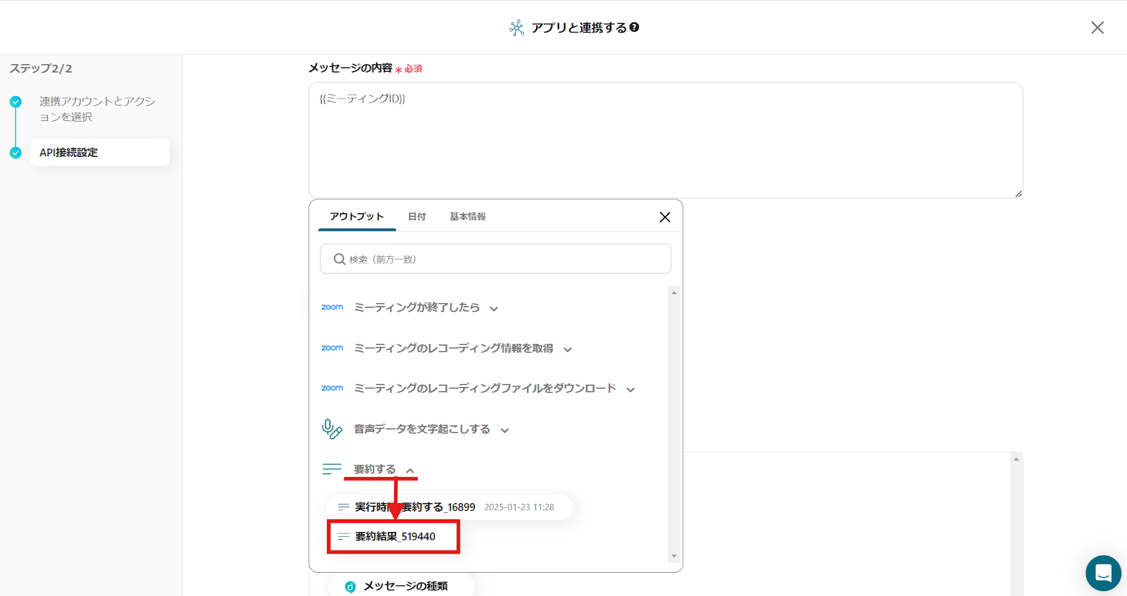 今回のフローの最後はdirectに要約内容を送信可能です。そのため、会議内容や商談内容を共有したいメンバーが素早く把握可能になることが期待できます。