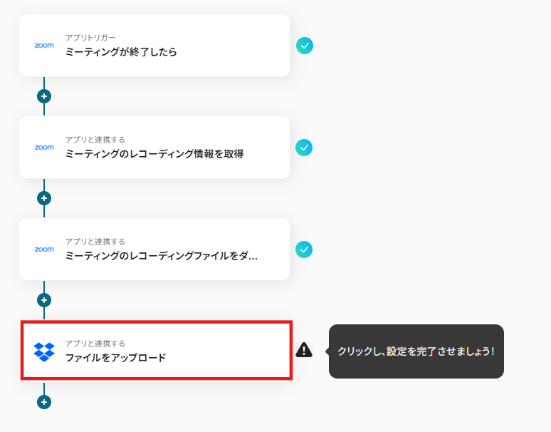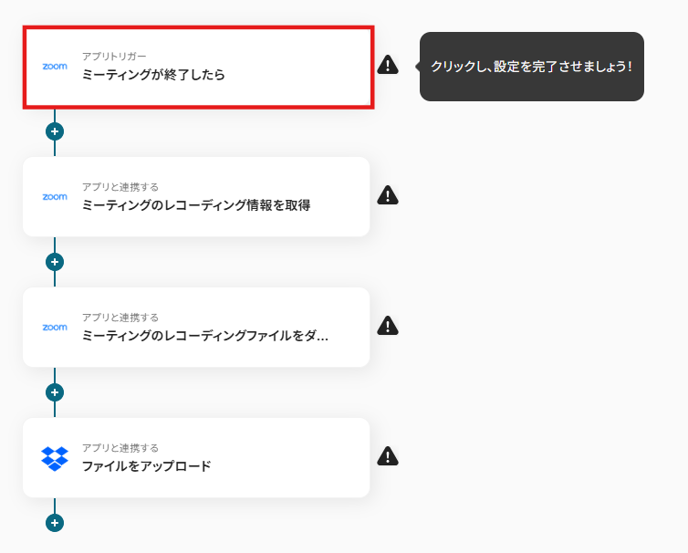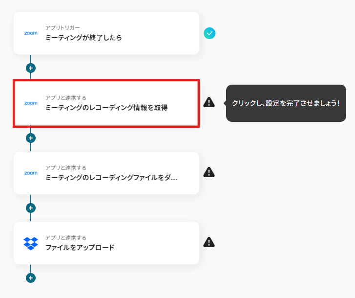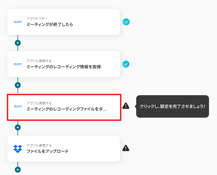 Zoomミーティングが終了すると同時に、録画データが自動でDropboxに保存される仕組みを作れば、手作業が削減でき、スムーズなデータ管理が見込めます。