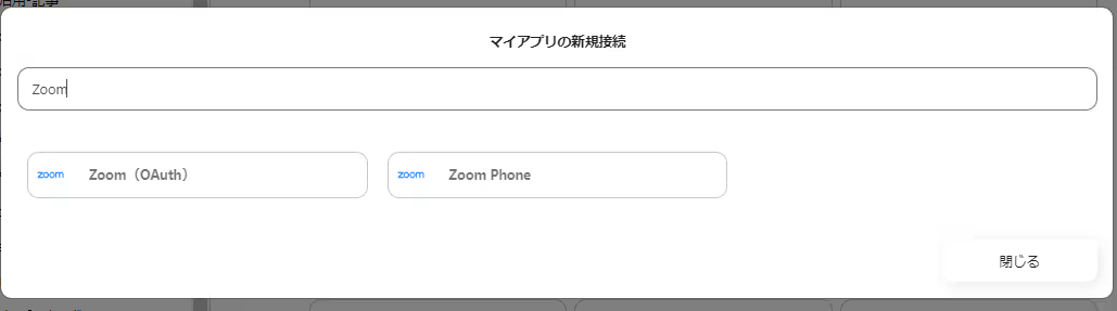 2.マイアプリの新規接続一覧の中から、Zoomを選択しログインします。