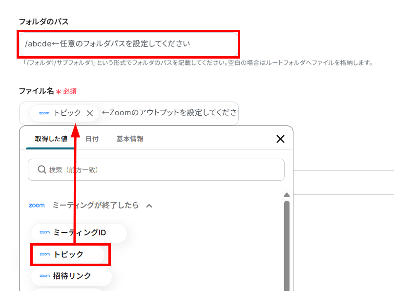 3.対象の「フォルダのパス」と「ファイル名」を設定していきます。