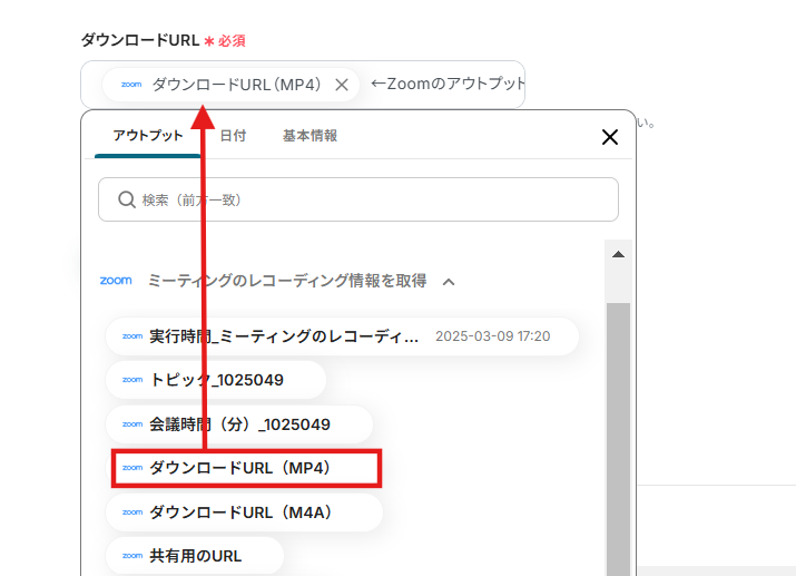 ・Zoomのレコーディング情報を取得するためには、ミーティングデータがクラウドレコーディングされている必要があります。