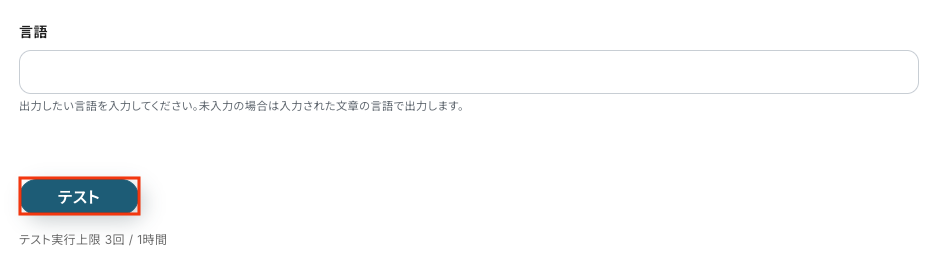 入力が完了したら「テスト」をクリックして、設定したプロンプトを元に正しくテキストが生成されるか確認しましょう。
