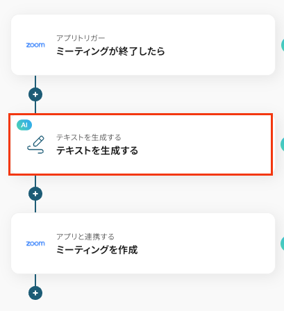 以下の画像に表示されているアウトプット(生成結果)は、この後のステップでZoomに新しいミーティングを作成する際に利用できます。