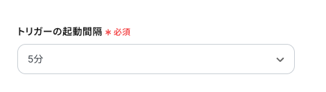トリガーの起動タイミングは、5分、10分、15分、30分、60分のいずれかで設定できます。