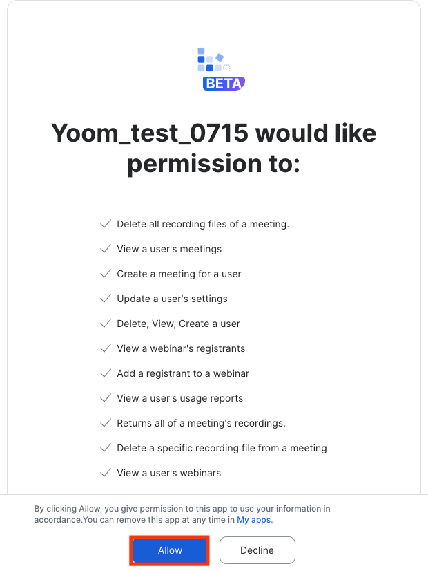 下記の画面が表示されるので、内容を確認し「Allow」をクリックします。