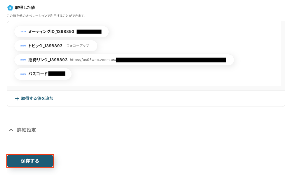 問題がなければYoomの操作画面に戻り、「保存する」をクリックします。