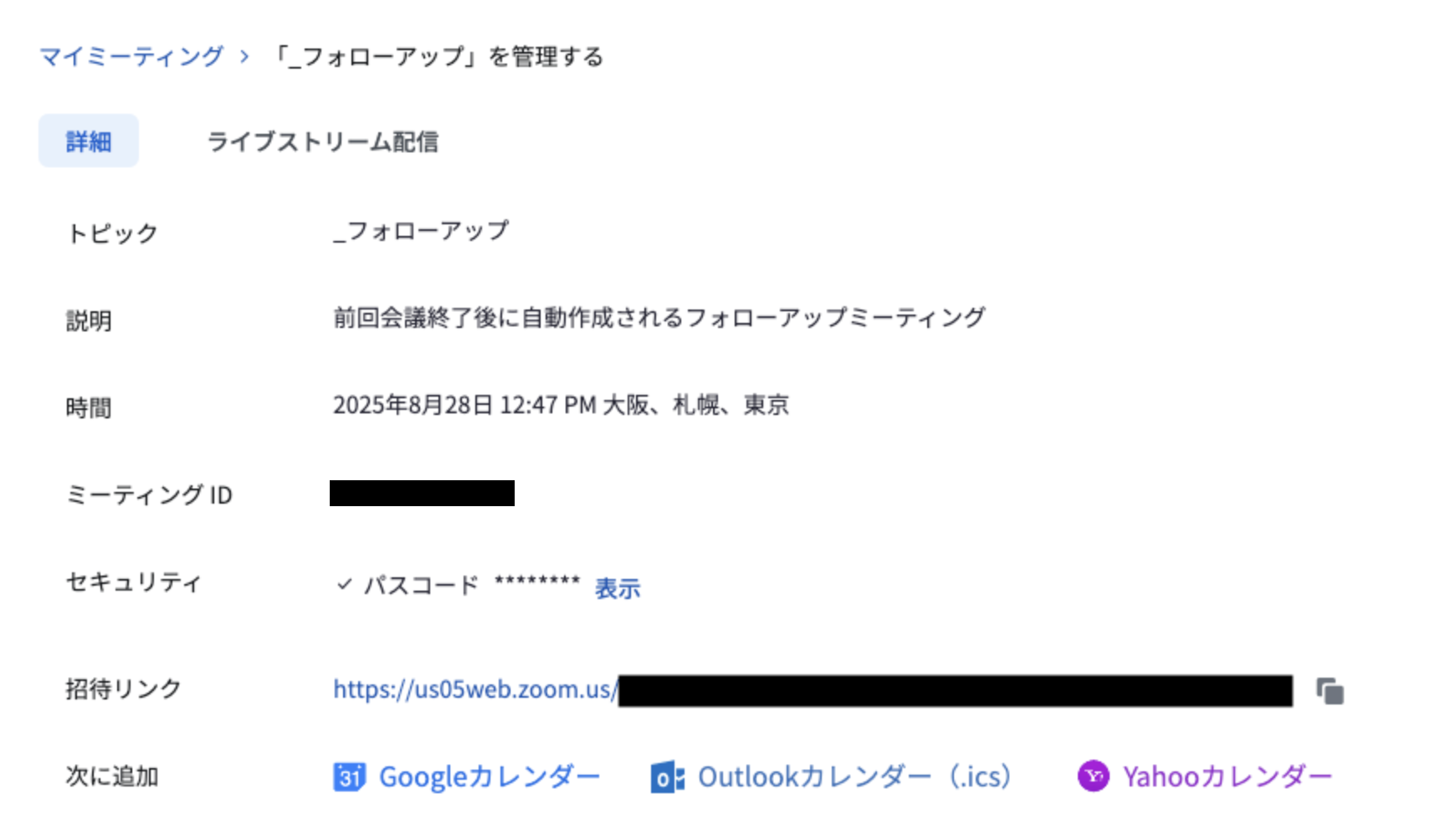 あわせてZoomを開き、指定した内容で次回のミーティングが作成されているか確認してみましょう。