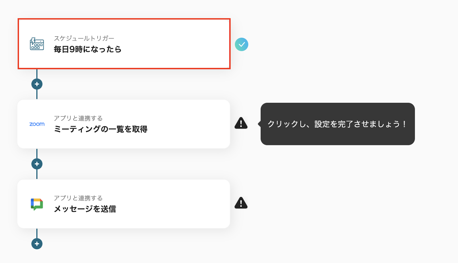それではYoomを活用して、「毎日Zoomの会議情報をGoogle Chatに通知する」のフローボットを設定しましょう!