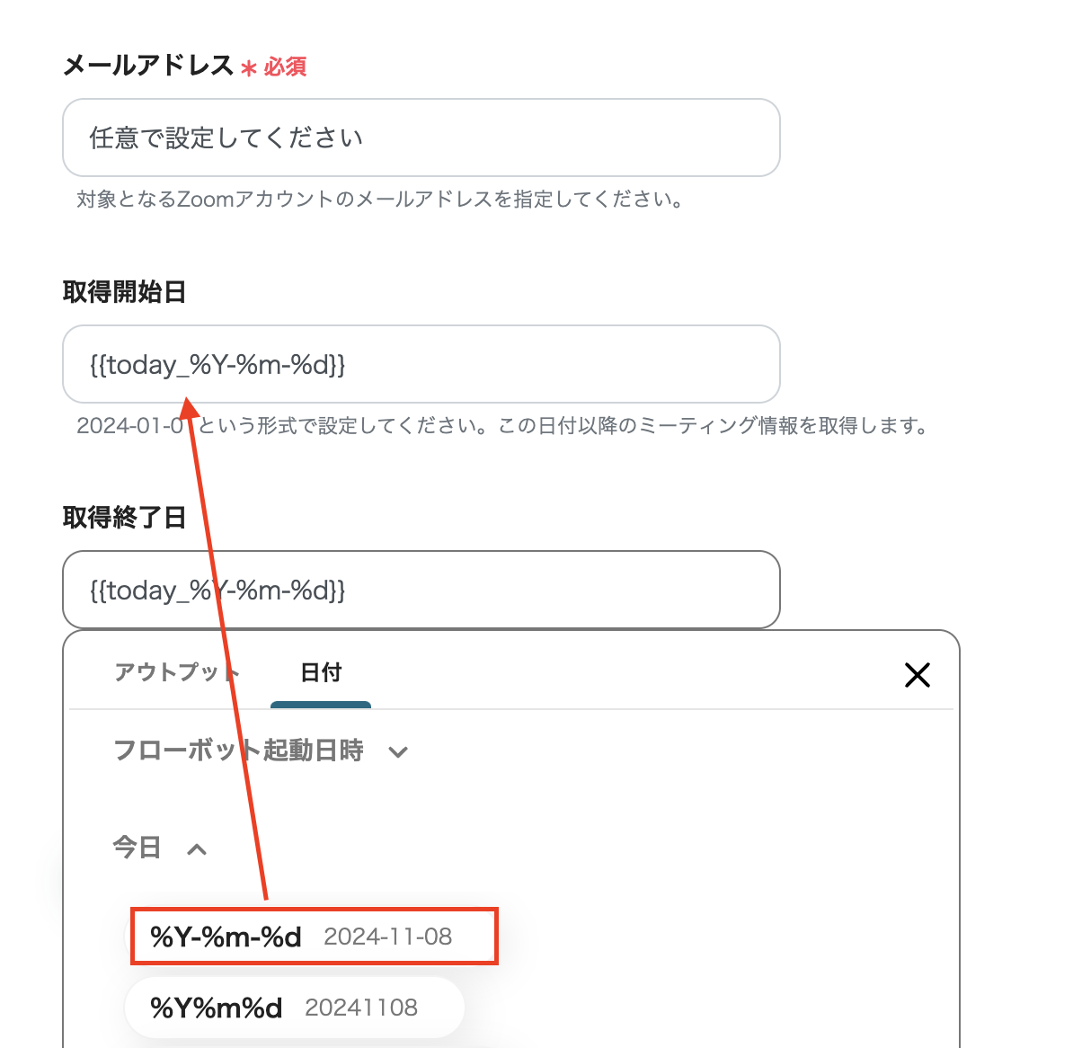 →この設定で、その日のミーティング情報をだけを取得できるようになります!