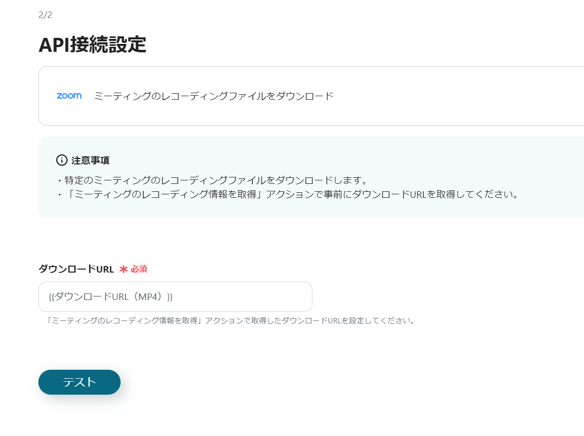 11)ダウンロードURLは「ミーティングのレコーディング情報を取得」アクションで取得したダウンロードURLを設定してください。