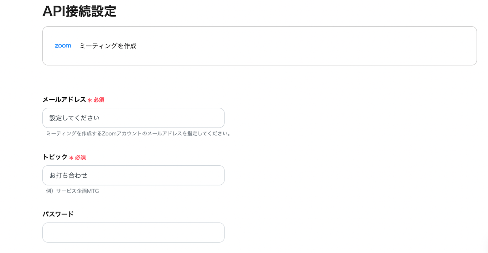 また、kintoneが提供するAPIを用いることで、ミーティング情報をkintoneのレコードに追加することで、実現可能となります。