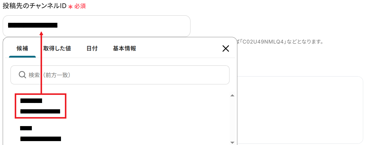 次に投稿先のチャンネルIDを候補から選択しましょう。
