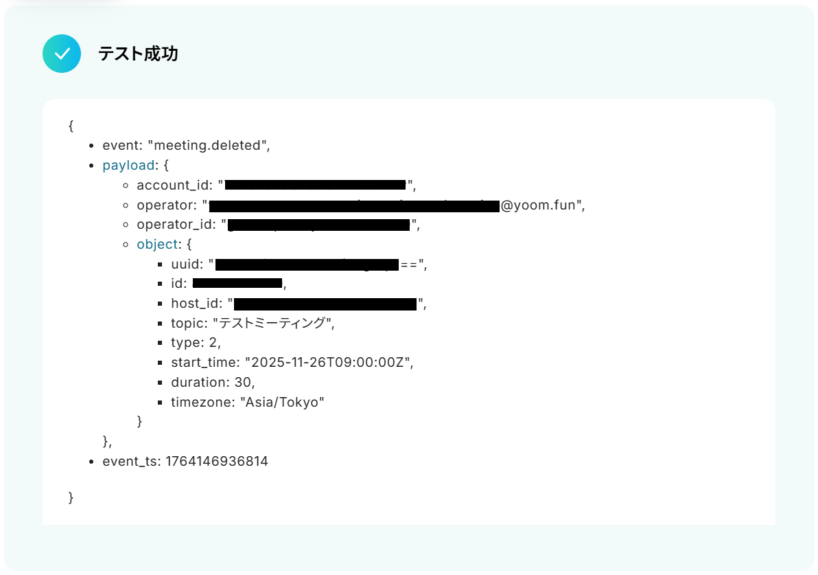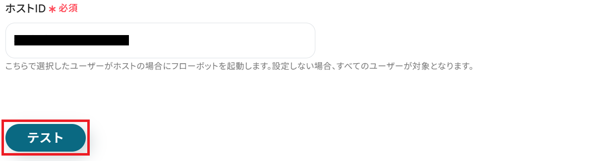ここまで完了したらYoomの設定画面に戻り、ホストIDを入力してテストしましょう。