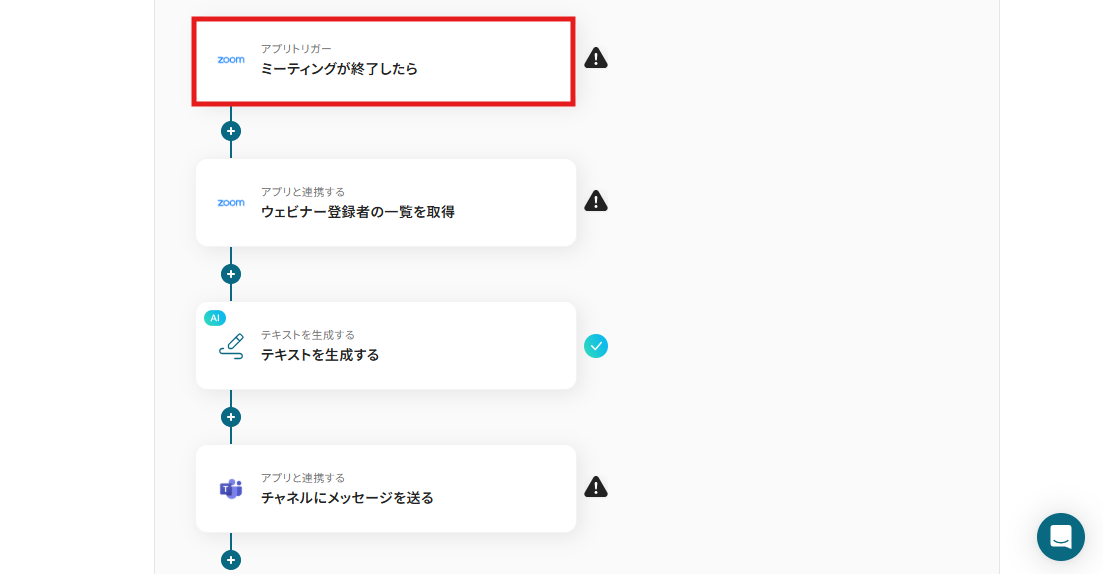 - Zoomのトリガー設定およびMicrosoft Teamsのアクション設定