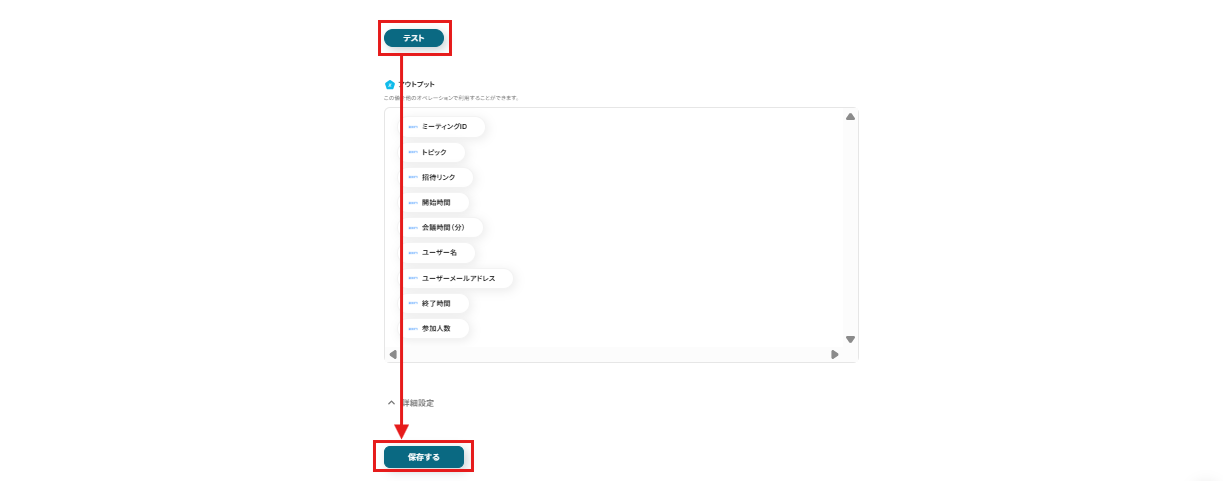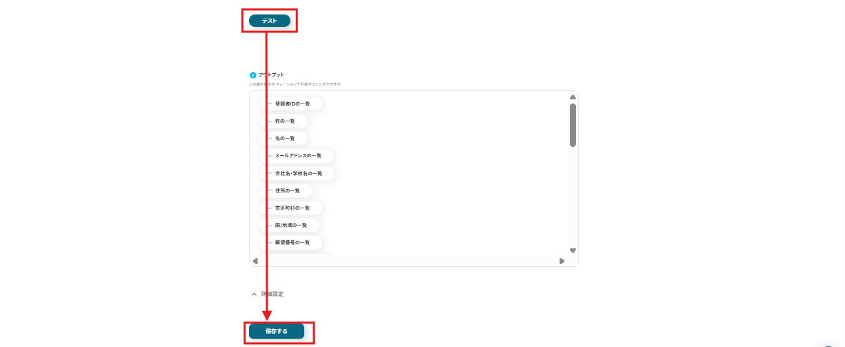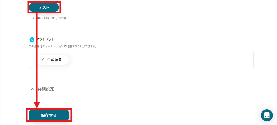 設定が完了したら、テストを実行し、「保存する」をクリックしましょう。