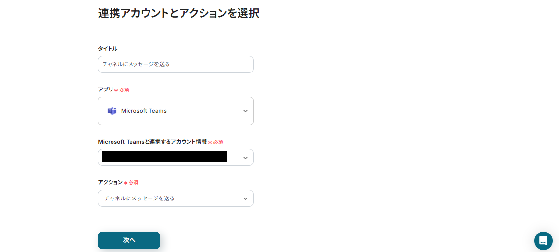 最後に、Microsoft Teamsアイコンの「チャネルにメッセージを送る」という項目を設定していきましょう。