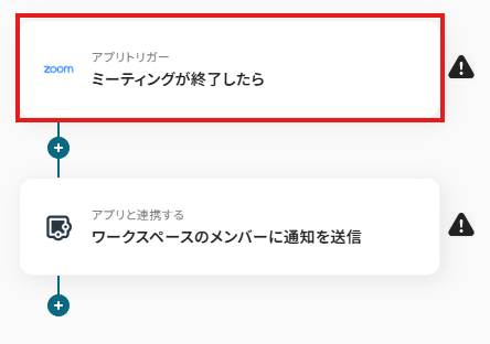 1.先ほどの画面で「OK」をクリックして、表示された画面のアプリトリガー「ミーティングが終了したら」をクリックしてください。