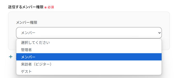 「送信するメンバー権限」は、プルダウンから選択してください。
