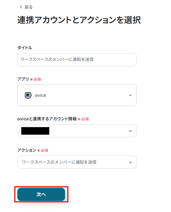 1.アプリと連携する「ワークスペースのメンバーに通知を送信」をクリックしてください。