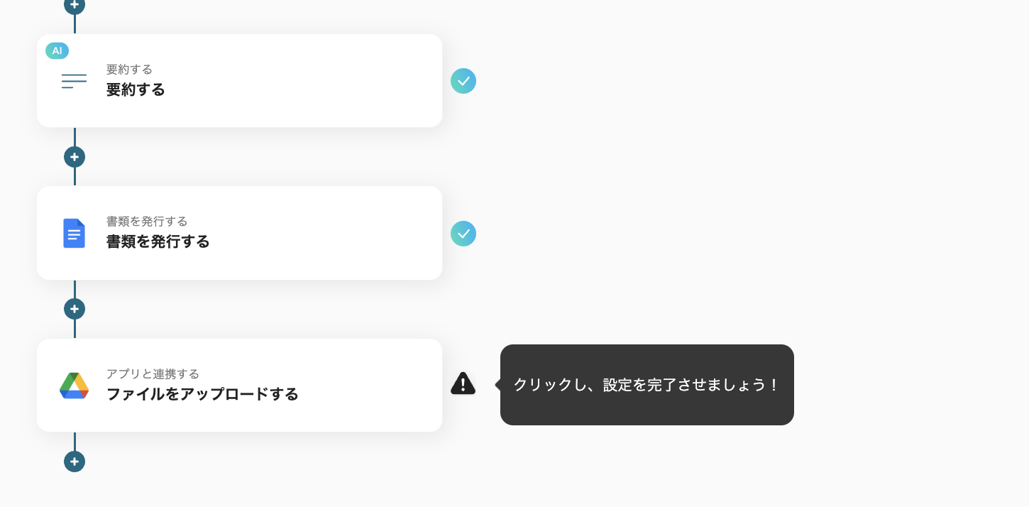 ■概要 Zoomミーティングの設定とGoogle Driveでのファイル管理を手作業で行い、手間を感じていませんか。 特に、Google Driveにアップロードされた申込書などの情報をもとに手動でミーティングを作成する作業は、時間がかかるだけでなく入力ミスの原因にもなります。 このワークフローを活用すれば、Google Driveの特定フォルダにファイルが追加されると、OCR機能が自動で内容を読み取りZoomミーティングを作成するため、こうした連携に関わる業務を効率化し、ミスなく処理を進めることが可能です。 ■このテンプレートをおすすめする方 ・Google Driveに保存された申込情報をもとに、手作業でZoomミーティングを作成しているご担当者の方 ・ZoomとGoogle Driveの連携を自動化し、オンラインでの商談や面談設定を効率化したい方 ・定期開催するウェビナーなどの運営で、ファイル管理からミーティング発行までの工数を削減したい方 ■注意事項 ・トリガーは5分、10分、15分、30分、60分の間隔で起動間隔を選択できます。 ・プランによって最短の起動間隔が異なりますので、ご注意ください。 ・分岐はミニプラン以上のプランでご利用いただける機能(オペレーション)となっております。フリープランの場合は設定しているフローボットのオペレーションはエラーとなりますので、ご注意ください。 ・ミニプランなどの有料プランは、2週間の無料トライアルを行うことが可能です。無料トライアル中には制限対象のアプリや機能(オペレーション)を使用することができます。 ・ダウンロード可能なファイル容量は最大300MBまでです。アプリの仕様によっては300MB未満になる可能性があるので、ご注意ください。 ・トリガー、各オペレーションでの取り扱い可能なファイル容量の詳細は下記をご参照ください。 https://intercom.help/yoom/ja/articles/9413924 ・OCRまたは音声を文字起こしするAIオペレーションはチームプラン・サクセスプランでのみご利用いただける機能となっております。フリープラン・ミニプランの場合は設定しているフローボットのオペレーションはエラーとなりますので、ご注意ください。 ・チームプランやサクセスプランなどの有料プランは、2週間の無料トライアルを行うことが可能です。無料トライアル中には制限対象のアプリやAI機能(オペレーション)を使用することができます。 ・OCRデータは6,500文字以上のデータや文字が小さい場合などは読み取れない場合があるので、ご注意ください。 ・Zoomのプランによって利用できるアクションとそうでないアクションがあるため、ご注意ください。 ・現時点では以下のアクションはZoomの有料プランのみ利用可能です。 ・ミーティングが終了したら ・ミーティングのレコーディング情報を取得する(クラウド上に存在するレコーディングのみ取得可能なため) ・詳細は下記をご参照ください。 https://intercom.help/yoom/ja/articles/9550398